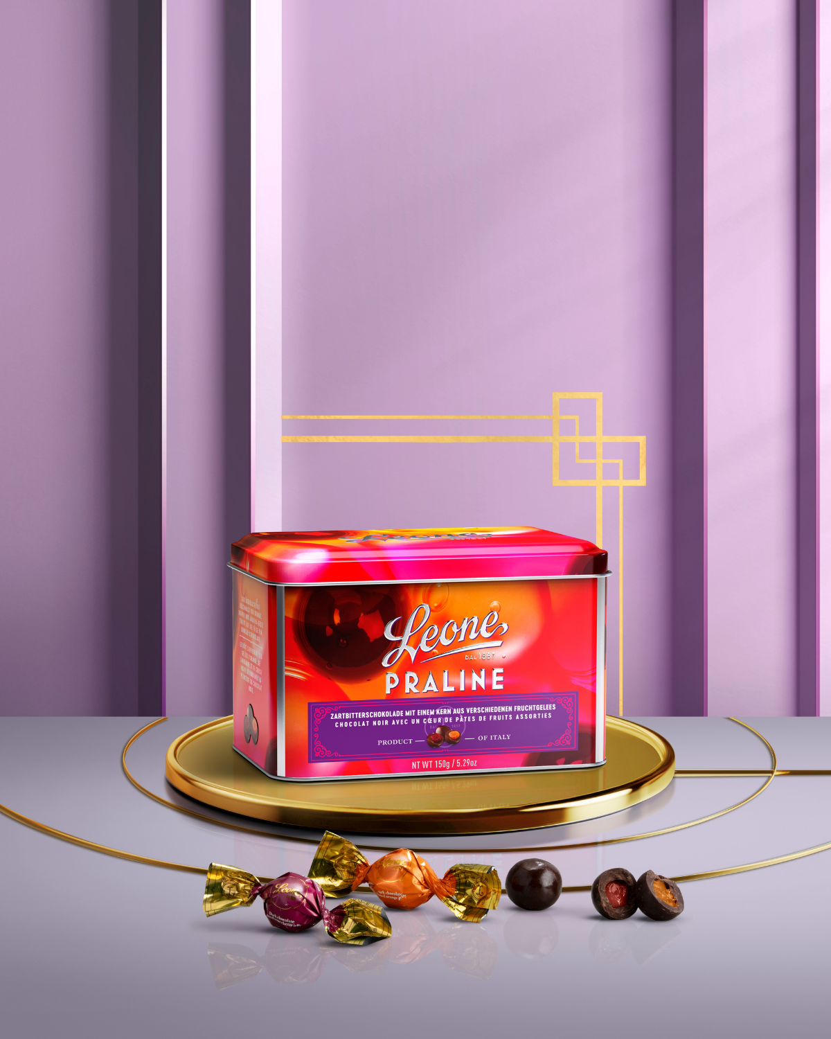 Der maximale Ausdruck der Verbindung zwischen der Welt der Leone-Süßigkeiten und dem umhüllenden Geschmack von Schokolade.