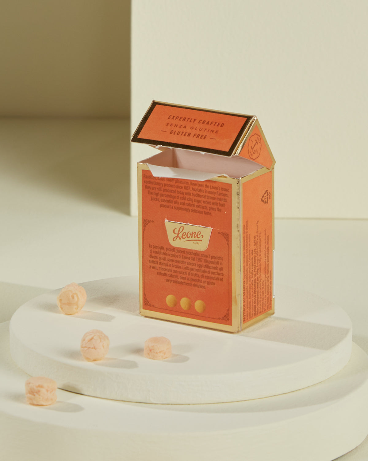 Eine kleine Schachtel, die Sie immer bei sich tragen können, voller kleiner süßer Schätze mit Orangengeschmack. Sie schmelzen sanft im Mund und entfalten einen einzigartigen, authentischen Geschmack, dank hochwertiger Zutaten und italienischer Handwerkstradition.