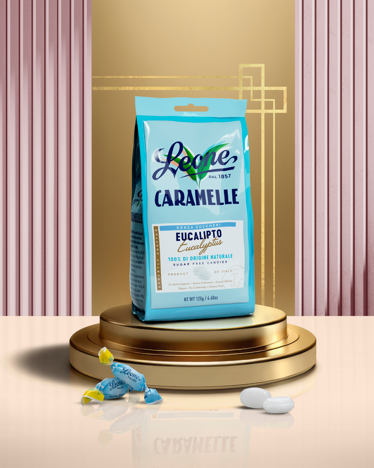 Hervorragende Köstlichkeiten mit Eukalyptusgeschmack. Kein Zucker, 100 % Leone.