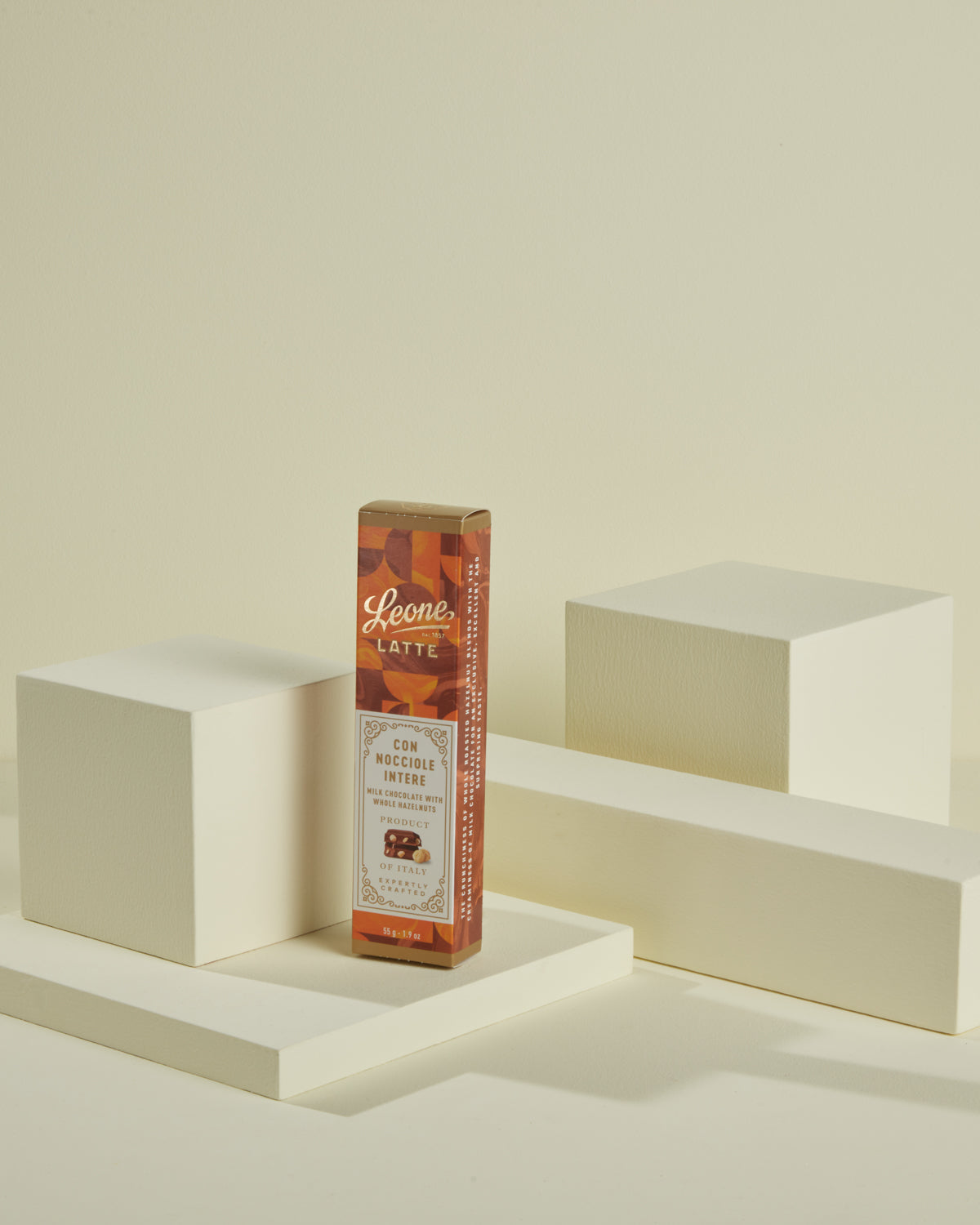 La morbidezza del cioccolato al latte abbraccia la croccantezza e il sapore inconfondibile delle nocciole.