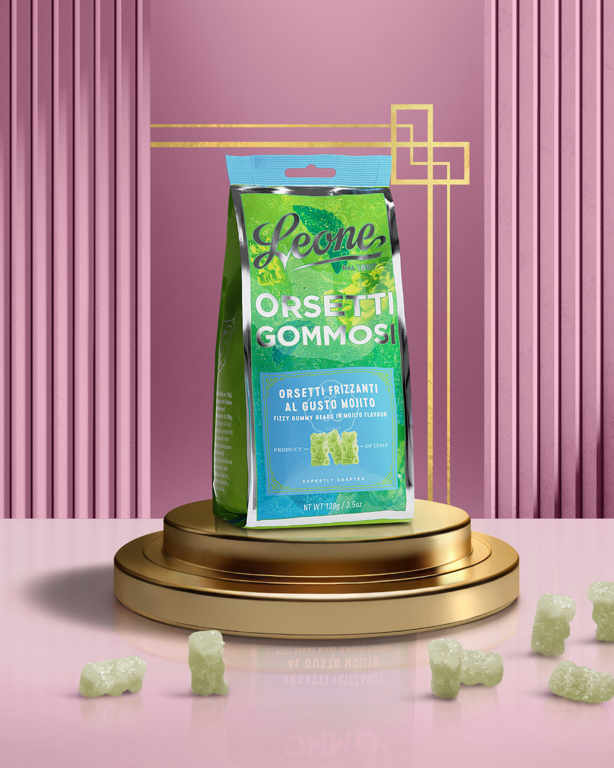 Un’esplosione di freschezza in un morso. Gli orsetti gommosi al gusto Mojito racchiudono tutto il brio della menta e la vivacità del lime, uniti a un sorprendente tocco frizzante.