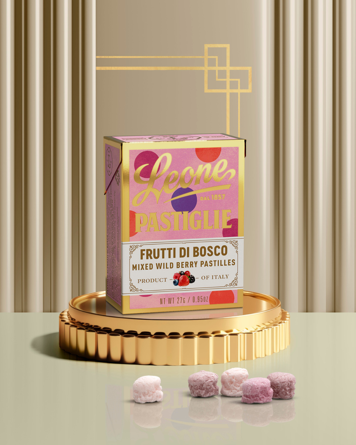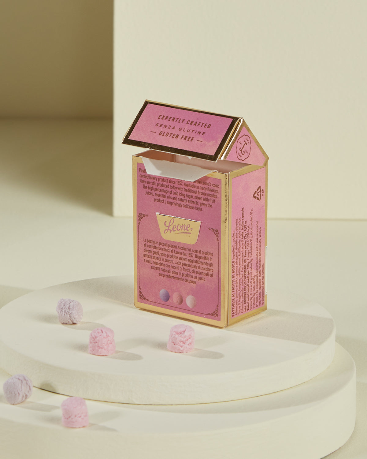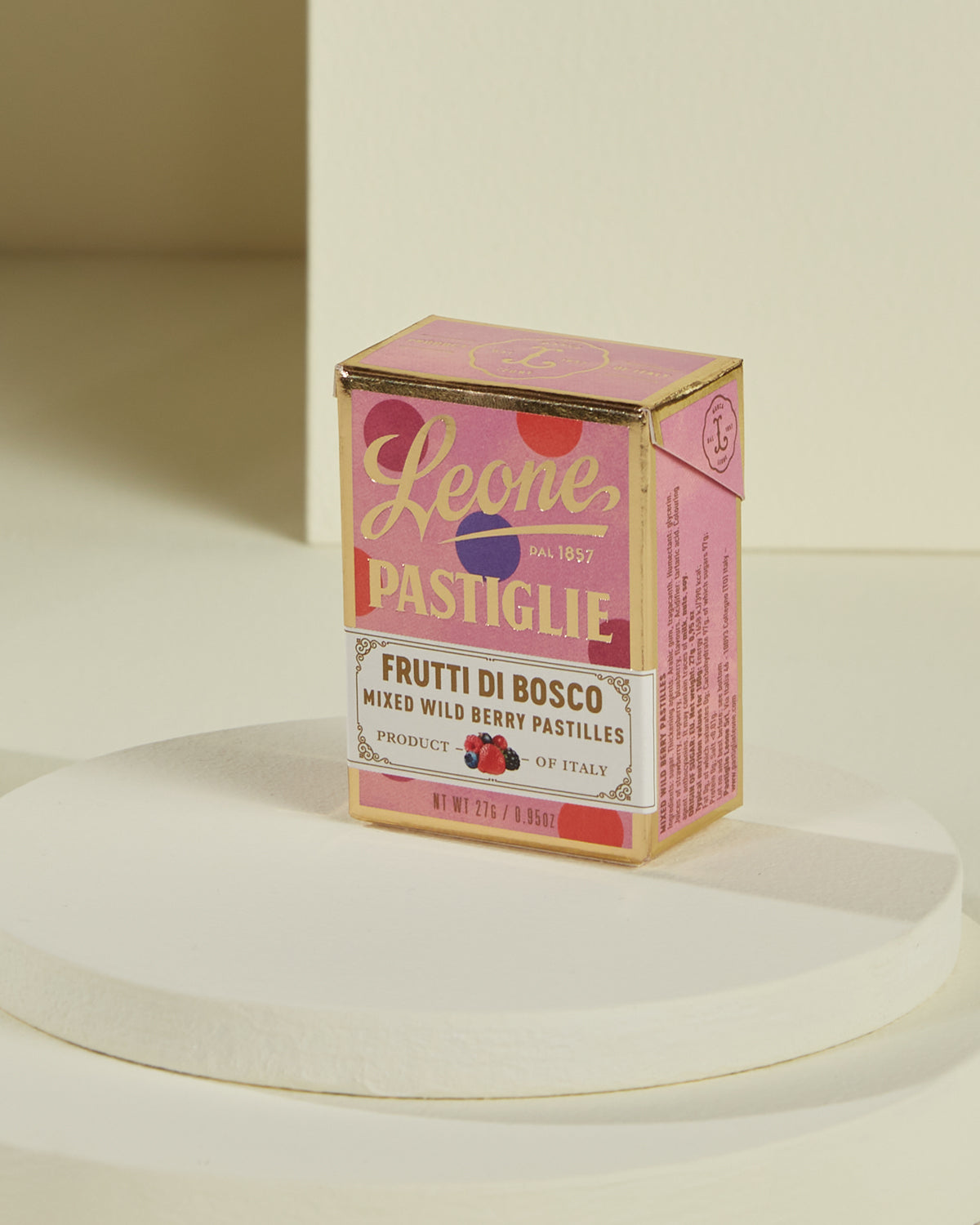 Un petit coffret à emporter toujours avec soi, rempli de petits trésors sucrés au goût de petits fruits. Ils fondent délicatement dans la bouche, libérant une saveur unique et authentique, grâce aux ingrédients de haute qualité et à la tradition artisanale italienne.
