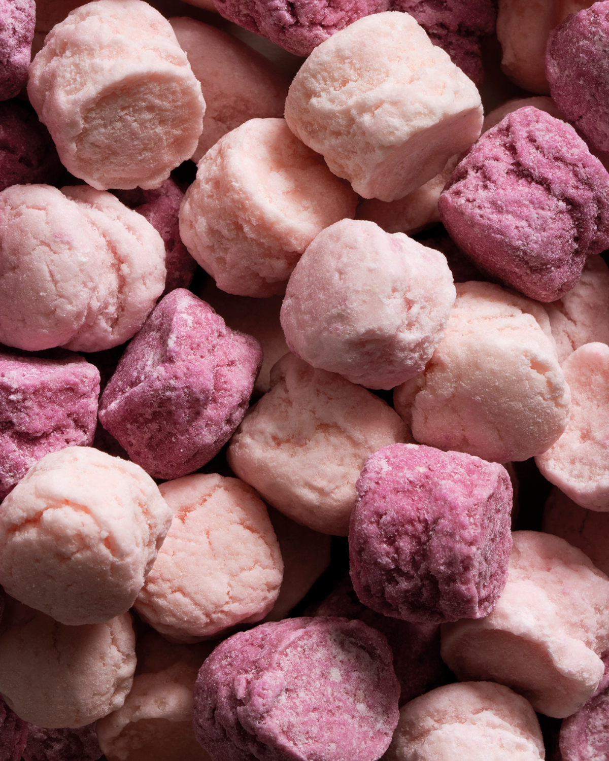 Ingrédients : sucre. Épaississants : gomme arabique, gomme adragante. Humectant : glycérine. Jus de fraise, framboise, myrtille, arômes. Acidifiant : acide tartrique. Colorant naturel : anthocyanes