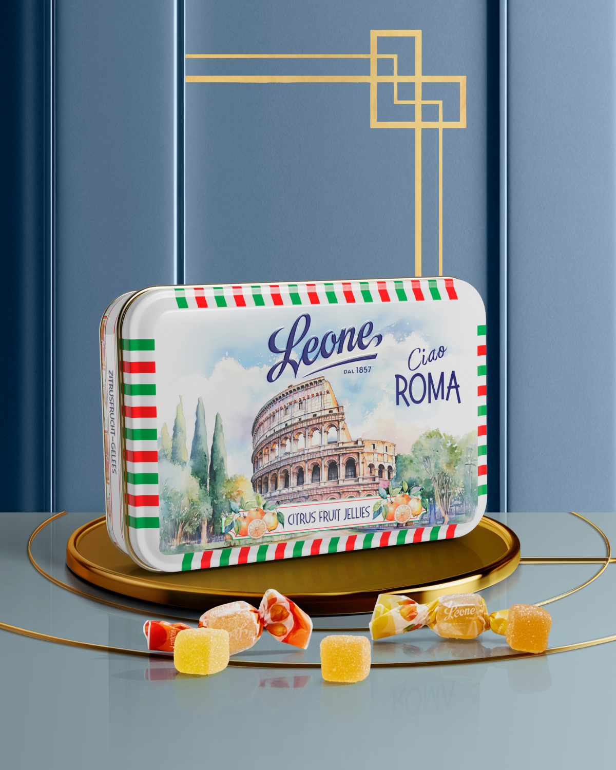 Une gelée d'agrumes éclatante, présentée dans une boîte en métal façon carte postale célébrant le Colisée et le charme intemporel de Rome. Un mélange de tradition et de vitalité qui ne cesse d'émerveiller, à l'image de la Ville Éternelle.